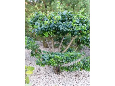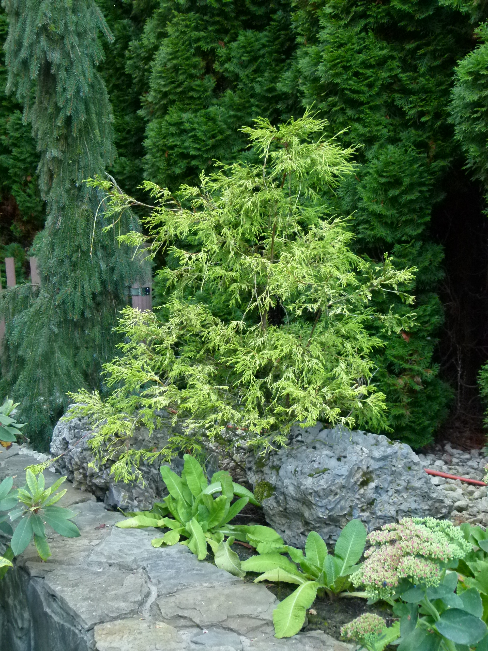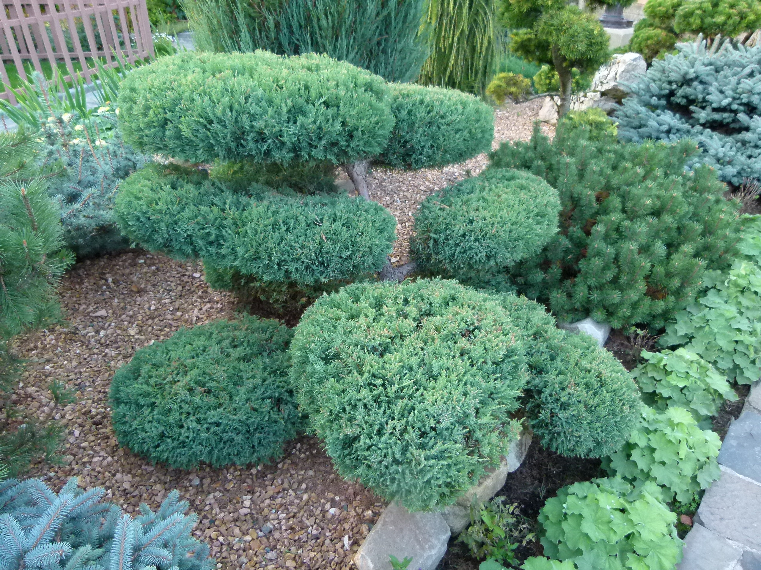 Повсюду красуются топиары – деревья с остриженной формой. Все дорожки отсыпаны щебёнкой: это и красиво, и практично: не нужно регулярно вскапывать сорняки. Поистине уникальна коллекция хвойных растений. Кроме уже упомянутых и это неполный список: пихта бальзамическая «Nana», пихта корейская, кипарисовик тупой «Filicoides», можжевельник обыкновенный «Horstmann», можжевельник скальный «Skyrocket», все существующие горизонтальные можжевельники, лиственница японская «Stiff Weeper», ель обыкновенная «Acrocona», ель обыкновенная «Barryi», ель обыкновенная «Frohburg», ель обыкновенная «Inversa», ель обыкновенная «Virgata», ель обыкновенная «Pusch», ель обыкновенная «Will’s Zwerg», ель канадская «Conica», ель канадская «Daisy’s White», ель сербская, ель колючая «Glauca Globosa»,ель колючяя «Hoopsii»,живая изгородь из ели колючей «Iseli Fastigiata», ель колючая «Koster», сосна горная «Mops»,сосна горная «Winter Gold» и др.