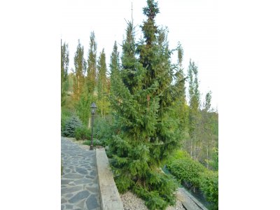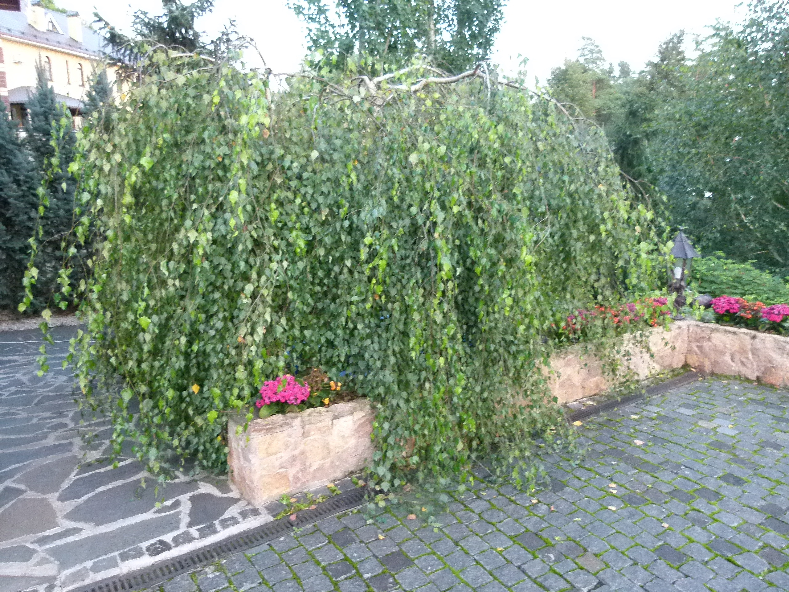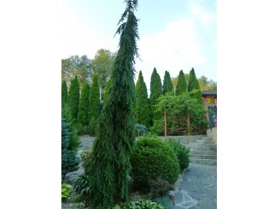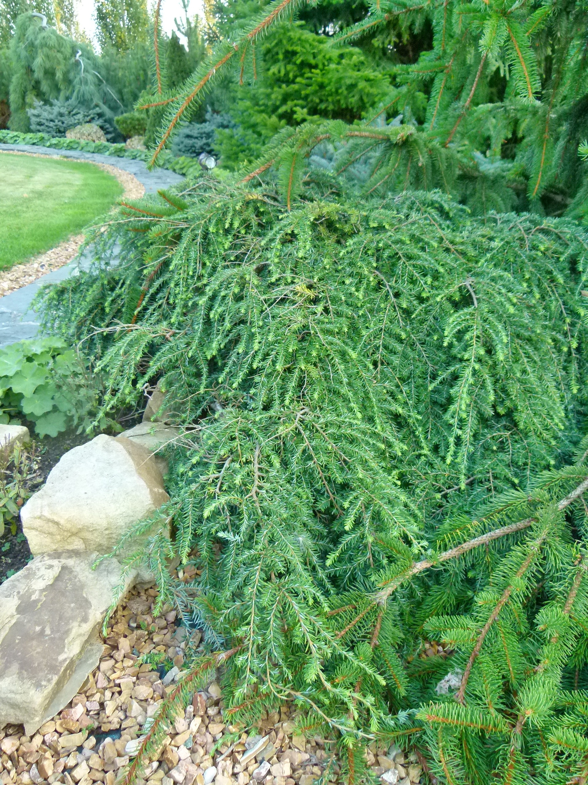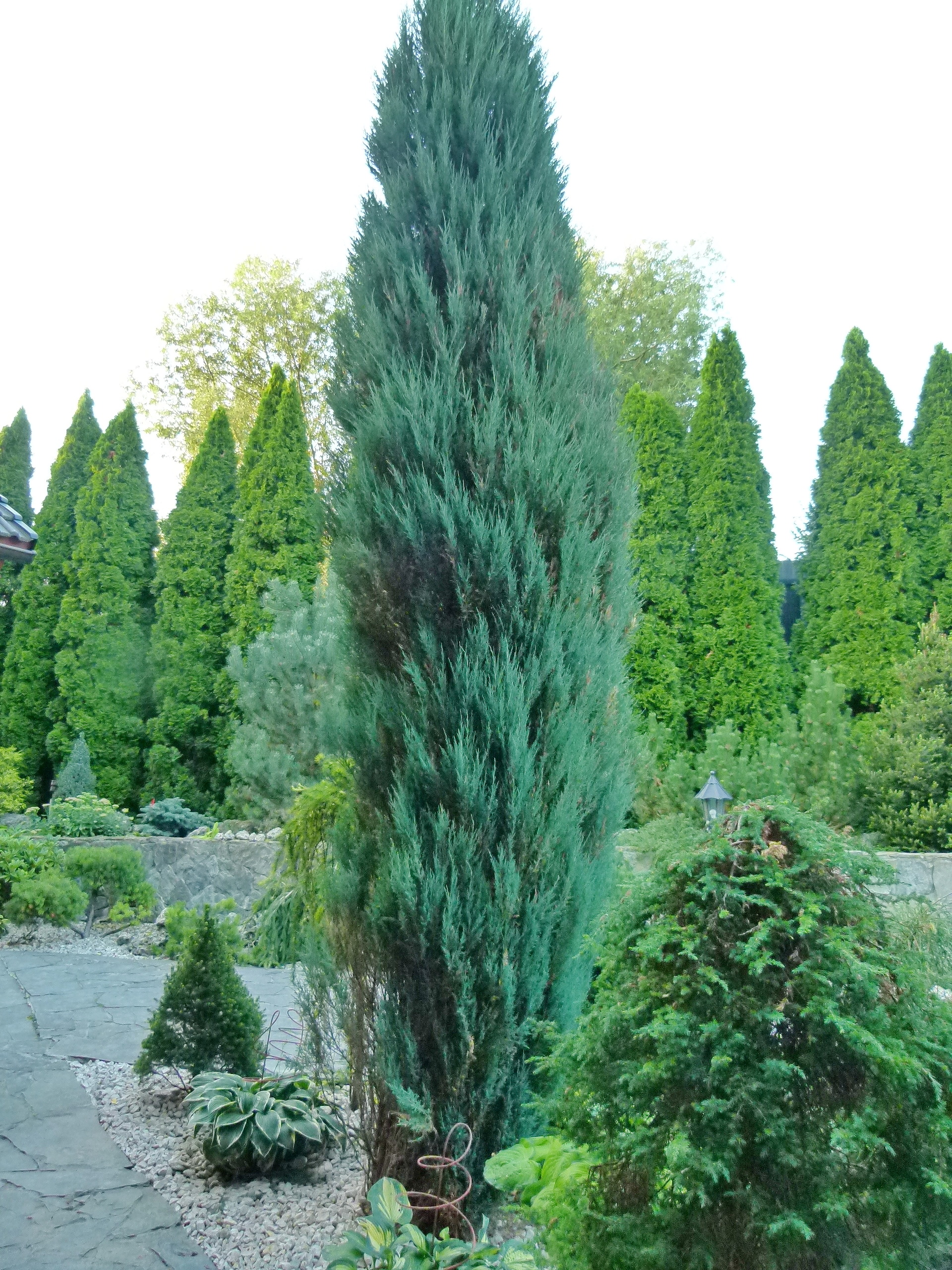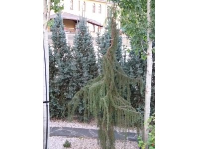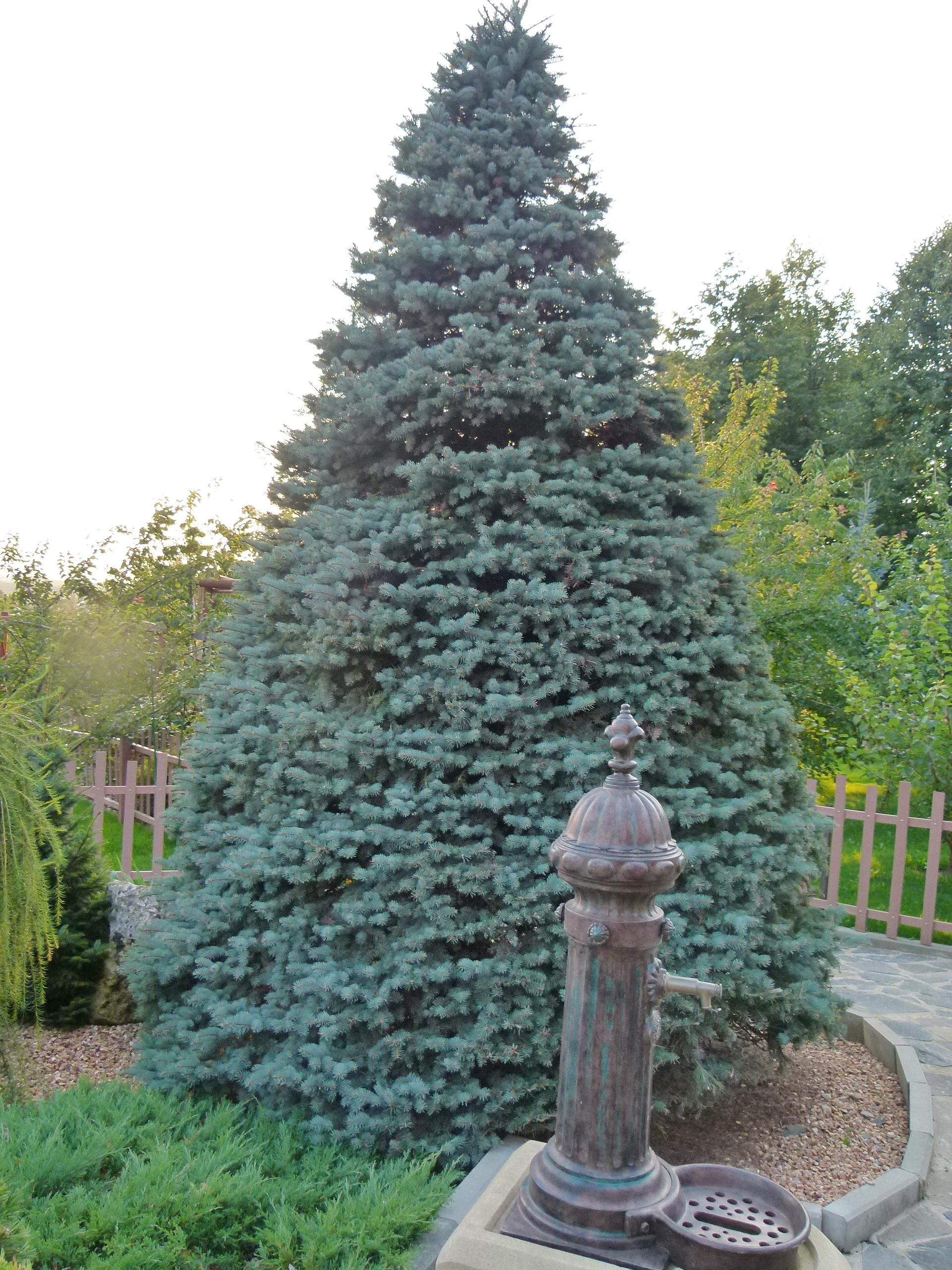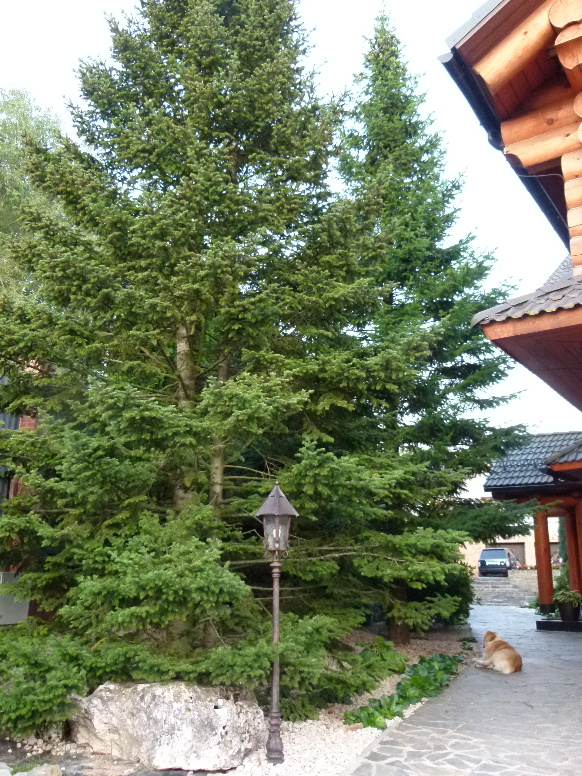 А вот остальные растения привезены из лучших питомников мира: плакучая ель, сосна Банкса из Германии (на дату покупки ей было 60 лет), туи по 6-7 метров, пихта корейская, японский клён (красный), ничуть не пугающая монстроподобная ель (сорт Виргата), ель Коника, редкая сосна (жёлтая зимой), сосна Веймутова, сибирская пихта, можжевельник китайский, плакучая лиственница и плакучий вяз, горные 30-летние сосны, сербские ели, высокие пирамидальные осины, берёза полезная.