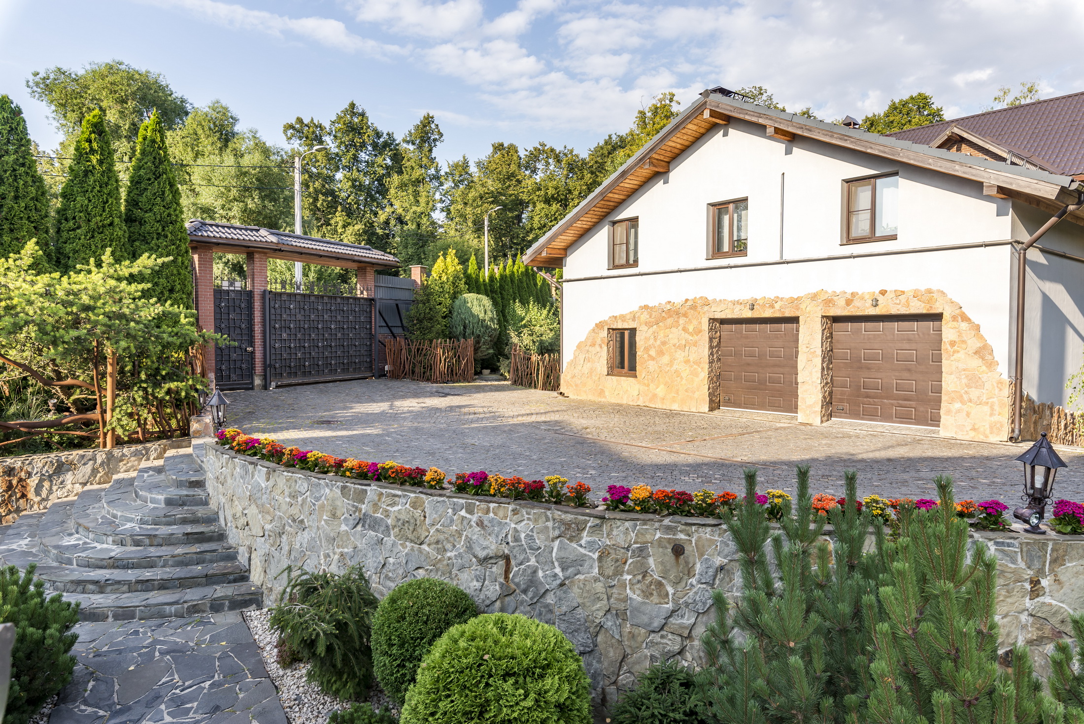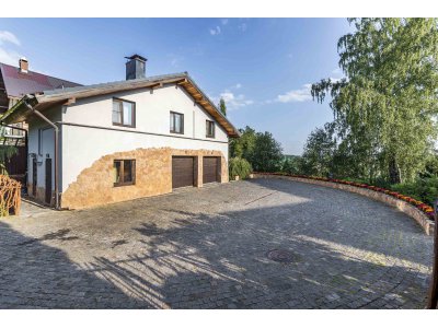 Гараж 36 кв.м на 2 автомобиля. Отдельные входы ведут в помещения котельной с многоступенчатой системой очистки воды, электрощитовой, генераторной.