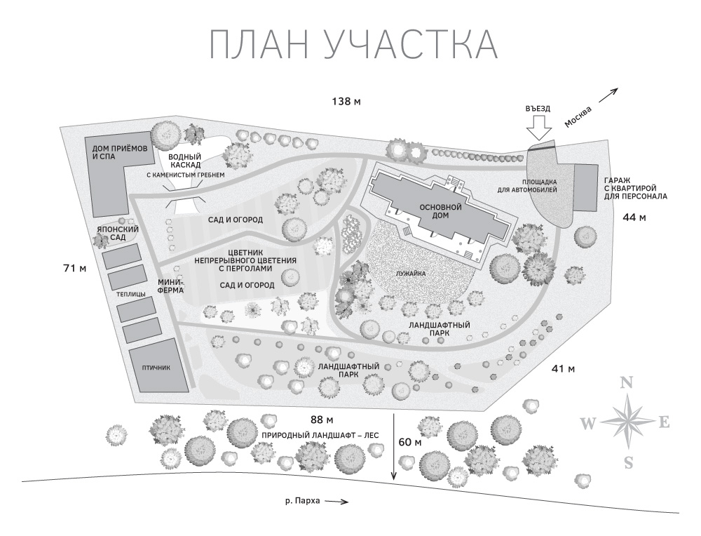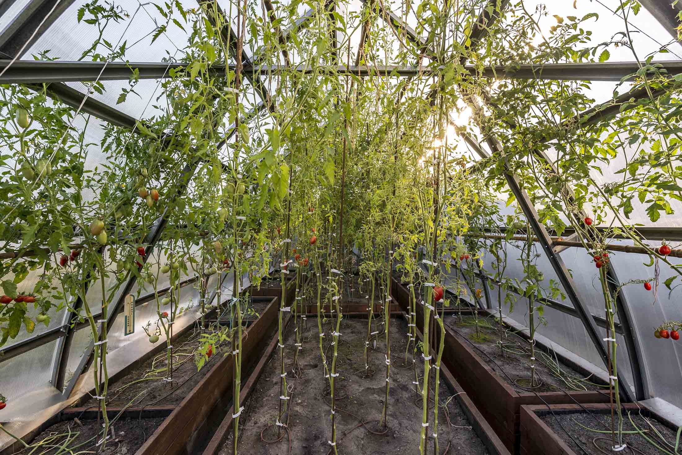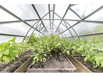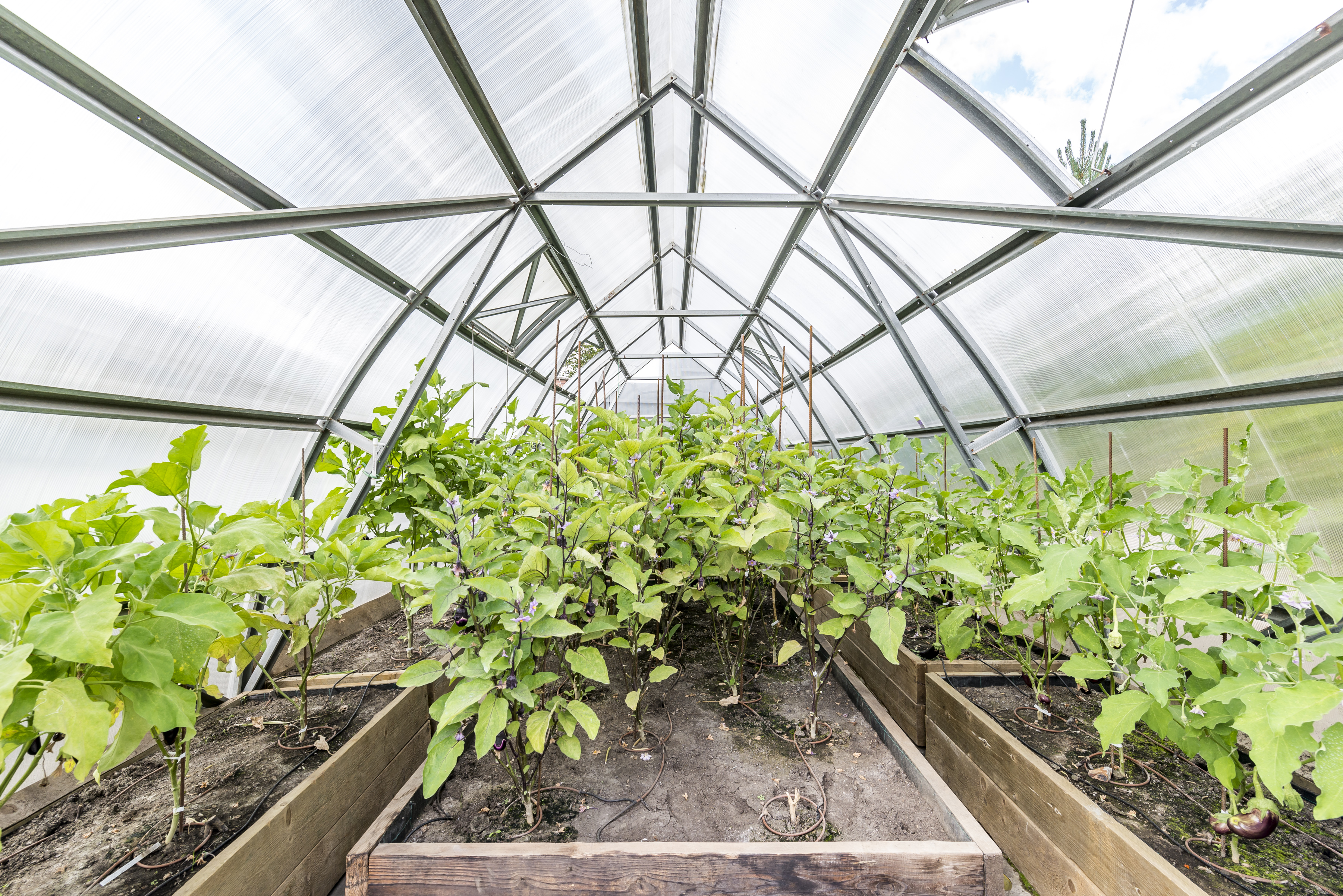 В этой усадьбе нет необходимости покупать овощи к столу: различные сорта томатов, огурцы, баклажаны и болгарский перец - годовые запасы этих овощей уже сейчас приносят 4 теплицы 8х4 м. Каждая теплица оснащена системой автоматического полива.